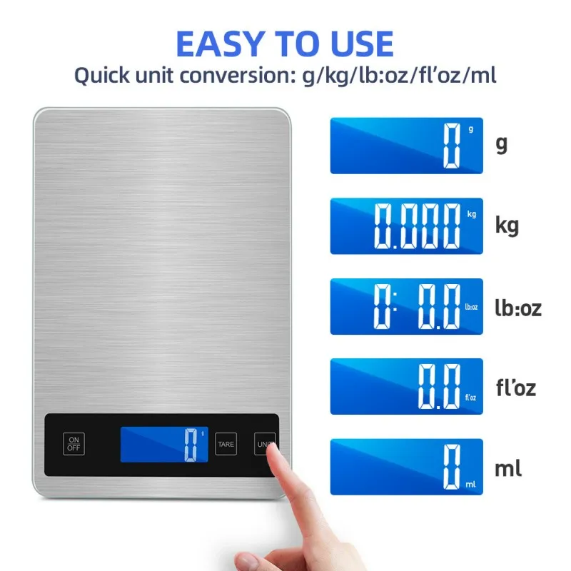 5/10/15kg Digital Kitchen Scale LED Stainless Steel Electronic Scales Jewelry Scale Food Scales Digital Weight Gram and Oz Scale
