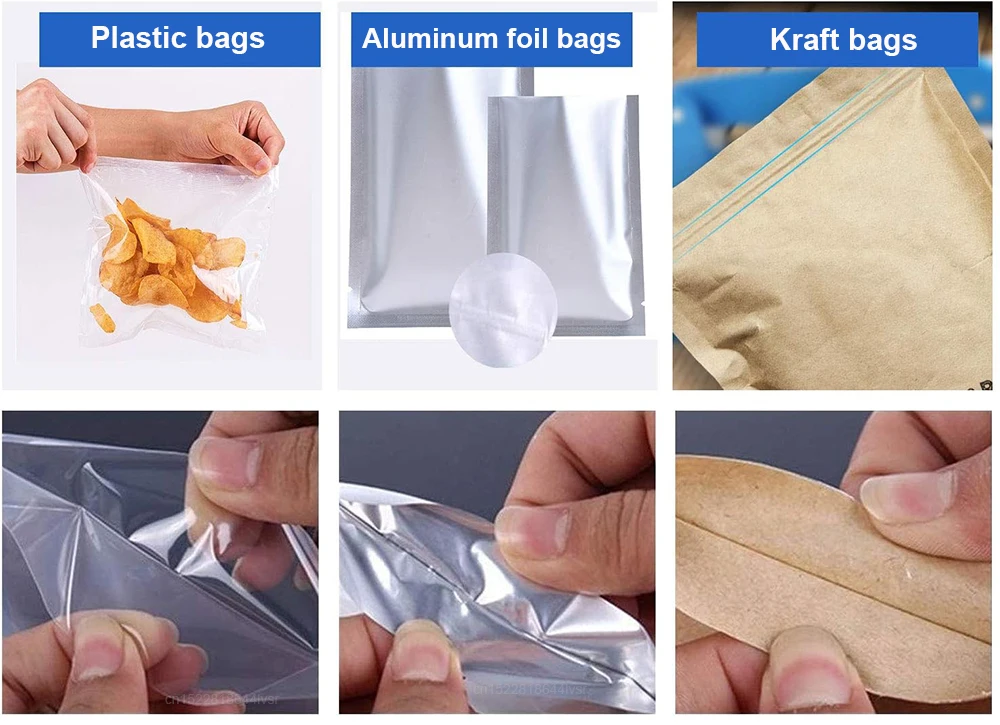 (3)The sealer machine are available in 8 temperature modes, ideal for a variety of materials packing, 1-2 level for plastic bags, 3-4 level for non-woven bags, 5-6 level for kraft bags, 7-8 level for aluminum foil bags.